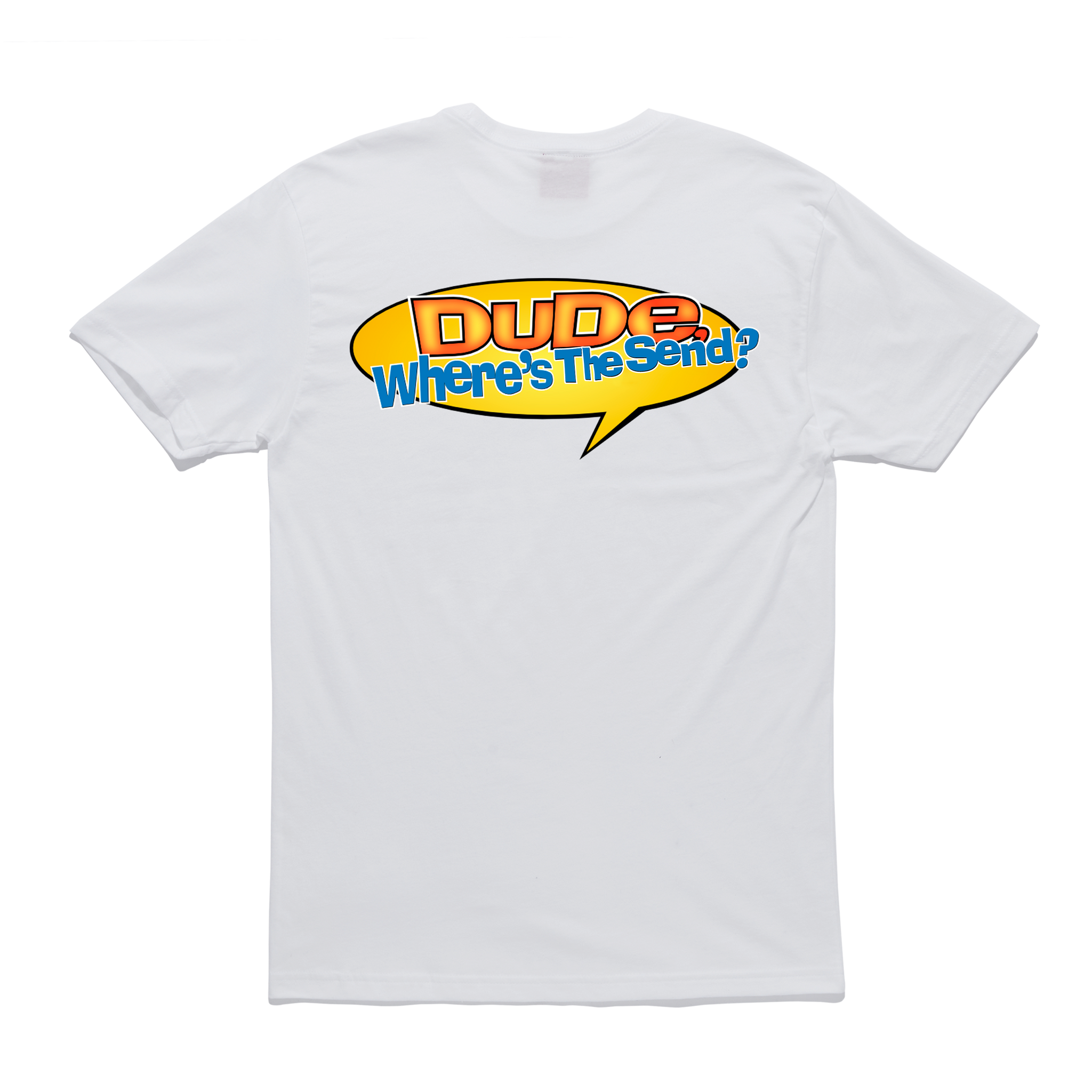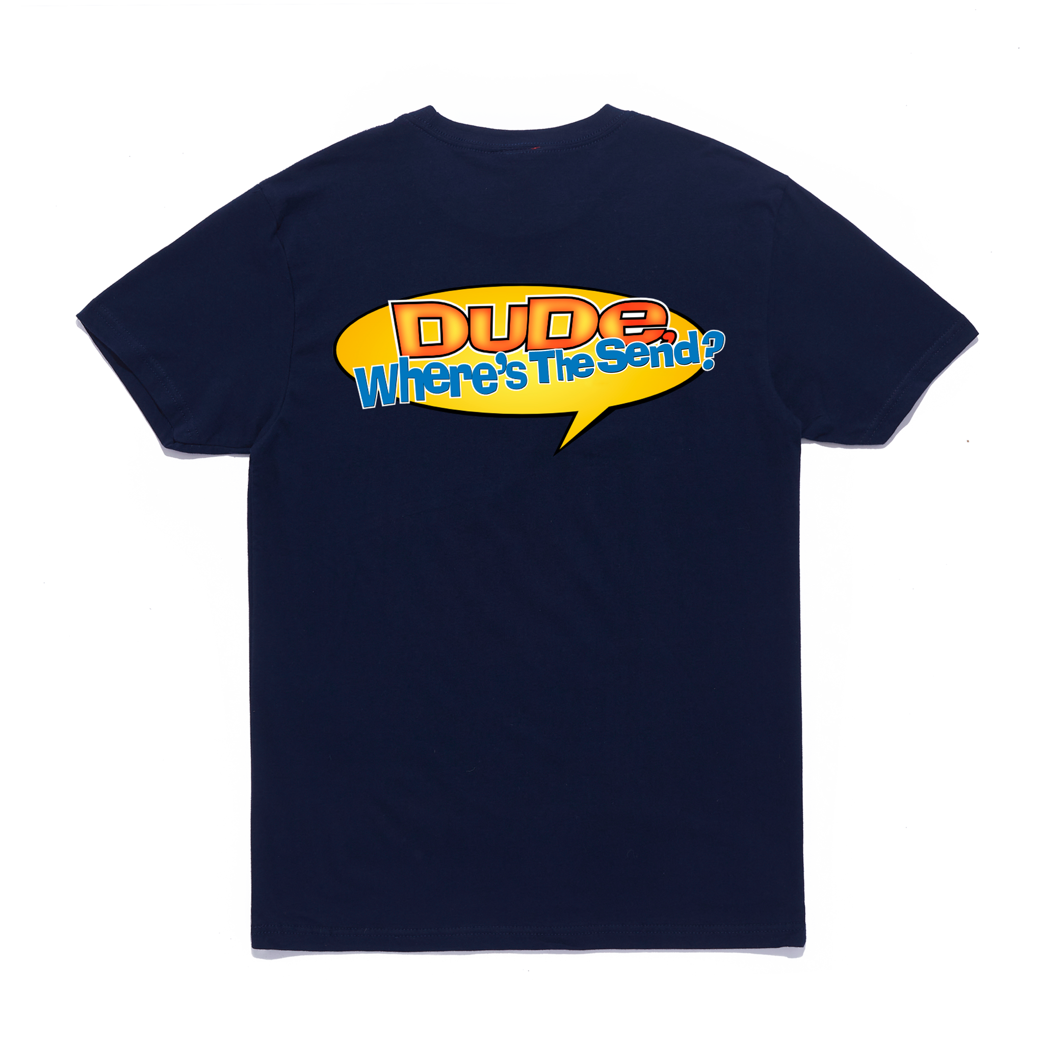 • Dude Where’s the Send screen printed on back